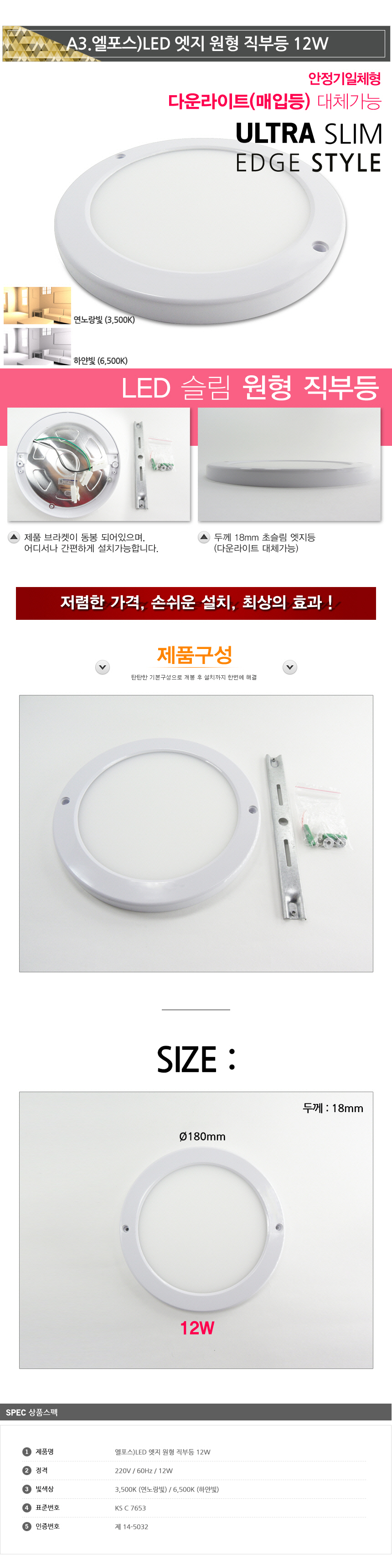 A3.¿¤Æ÷½º)LED¿§Áö ¿øÇüÁ÷ºÎ 12W ÇϾáºû (-24,000¿ø)