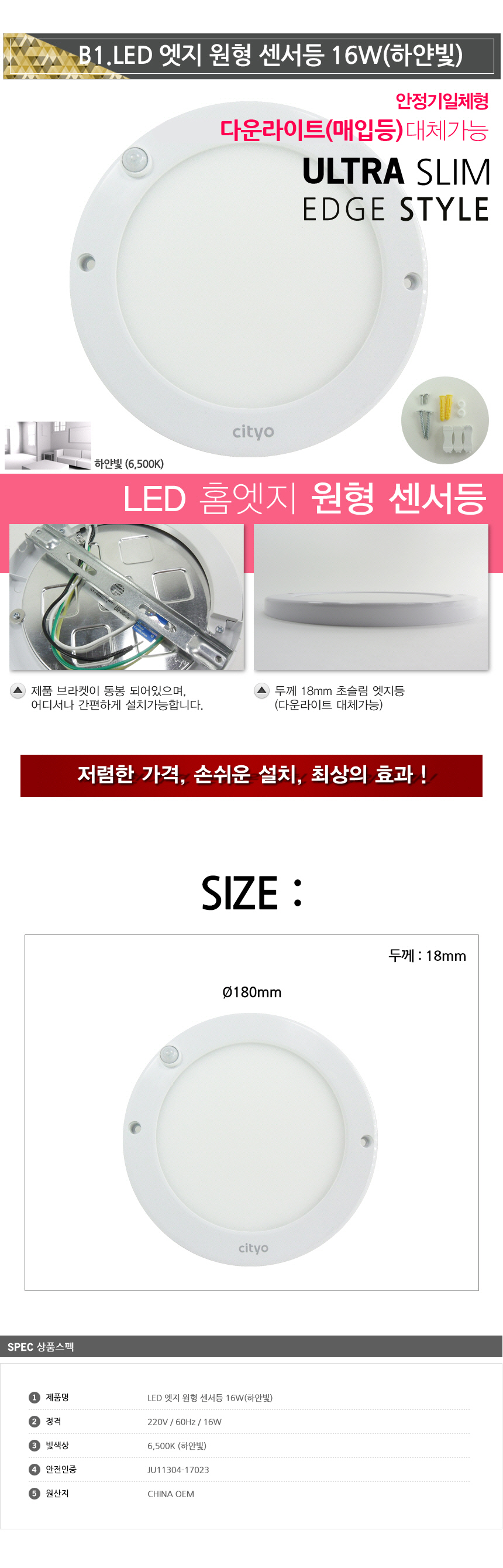 B1.LED¿§Áö ¿øÇü¼¾¼ 16W ÇϾáºû (-24,300¿ø)